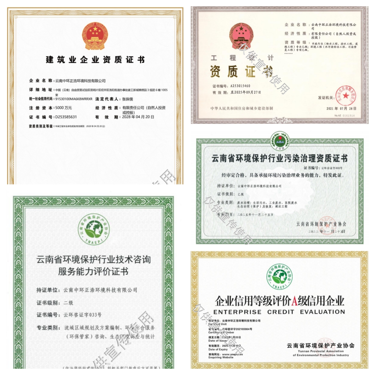 云南中環(huán)正浩環(huán)境科技有限公司成立于2016年12月09日,企業(yè)的經(jīng)營范圍為:許可項目:地質(zhì)災(zāi)害治理工程施工;地質(zhì)災(zāi)害治理工程監(jiān)理;地質(zhì)災(zāi)害治理工程勘查;地質(zhì)災(zāi)害治理工程設(shè)計;各類工程建設(shè)活動;地質(zhì)災(zāi)害危險性評估;建設(shè)工程勘察;建設(shè)工程設(shè)計。一般項目:環(huán)保咨詢服務(wù);生態(tài)資源監(jiān)測;環(huán)境保護(hù)監(jiān)測;固體廢物治理;地質(zhì)災(zāi)害治理服務(wù);土壤污染治理與修復(fù)服務(wù);土壤環(huán)境污染防治服務(wù);水污染治理;水環(huán)境污染防治服務(wù);大氣污染治理;大氣環(huán)境污染防治服務(wù);生態(tài)恢復(fù)及生態(tài)保護(hù)服務(wù);技術(shù)服務(wù)、技術(shù)開發(fā)、技術(shù)咨詢、技術(shù)交流、技術(shù)轉(zhuǎn)讓、技術(shù)推廣;專業(yè)保潔、清洗、消毒服務(wù);環(huán)境保護(hù)專用設(shè)備銷售;環(huán)境監(jiān)測專用儀器儀表銷售;貨物進(jìn)出口;技術(shù)進(jìn)出口。持有住建部門頒發(fā)的市政行業(yè)專業(yè)乙級和環(huán)境工程專項乙級工程設(shè)計資質(zhì)證書、國家發(fā)改委備案的工程咨詢單位證書(備案編號 9153010MA6K8WRRXR-20)、環(huán)境保護(hù)污染治理資質(zhì)乙級證書、環(huán)保管家資質(zhì)證書、環(huán)境咨詢認(rèn)證證書等。