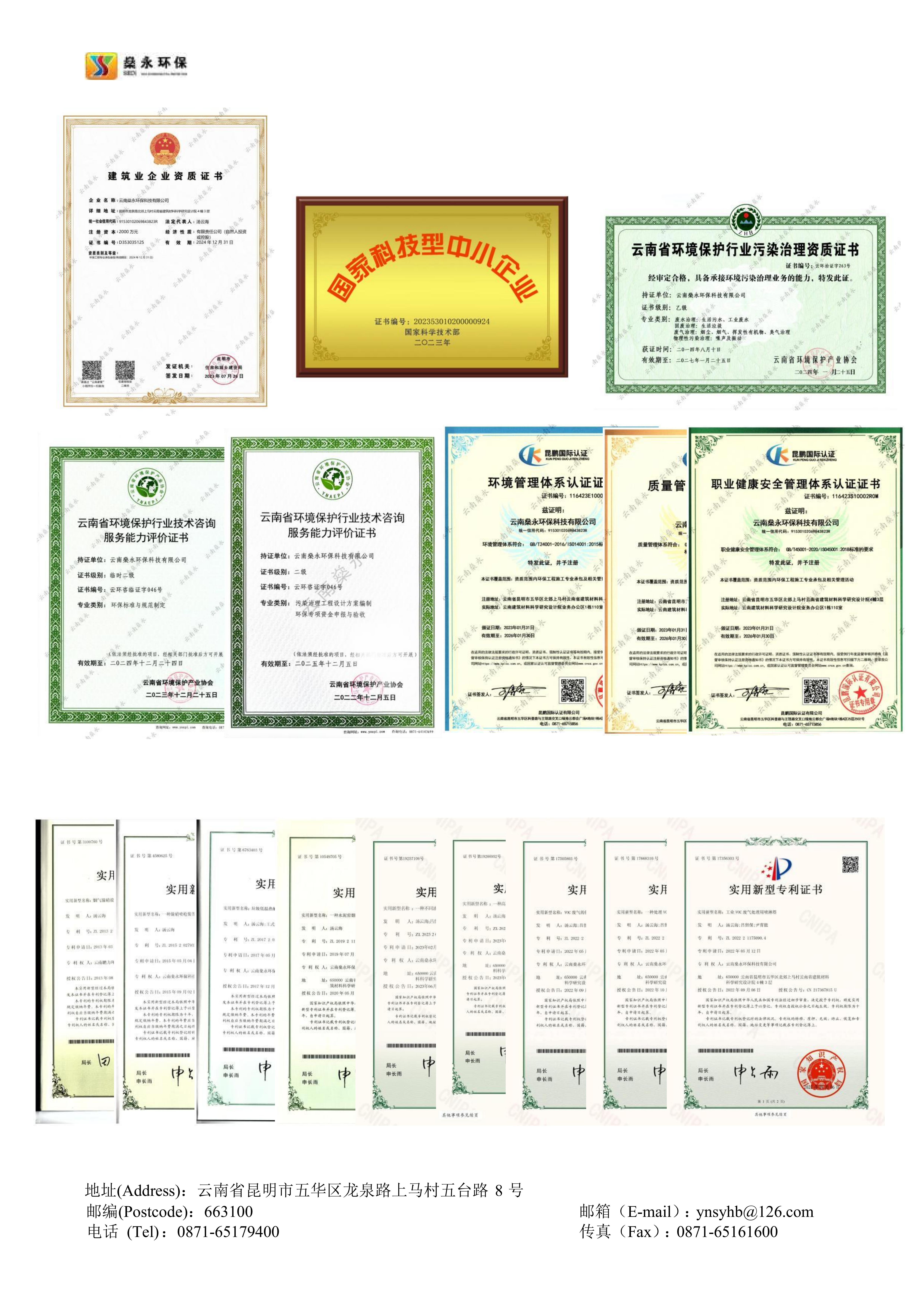 燊永公司堅持創(chuàng)新、協(xié)作、共贏的價值觀,以專業(yè)、專心、專注為服務(wù)理念,以求實、求是、求精為質(zhì)量宗旨,為客戶提供優(yōu)質(zhì)、高效、貼心的服務(wù)。公司獲得國家專業(yè)部門頒發(fā)的《環(huán)境工程專業(yè)承包三級》資質(zhì)、《污染治理乙級》資質(zhì)、《企業(yè)信用等級A級》證書、《云南省科技型中小企業(yè)》認定證書、ISO9001/GBT50430質(zhì)量管理體系》證書、ISO14001環(huán)境管理體系》證書、ISO45001職業(yè)健康安全管理體系》證書等多項榮譽和多項的專利技術(shù)。