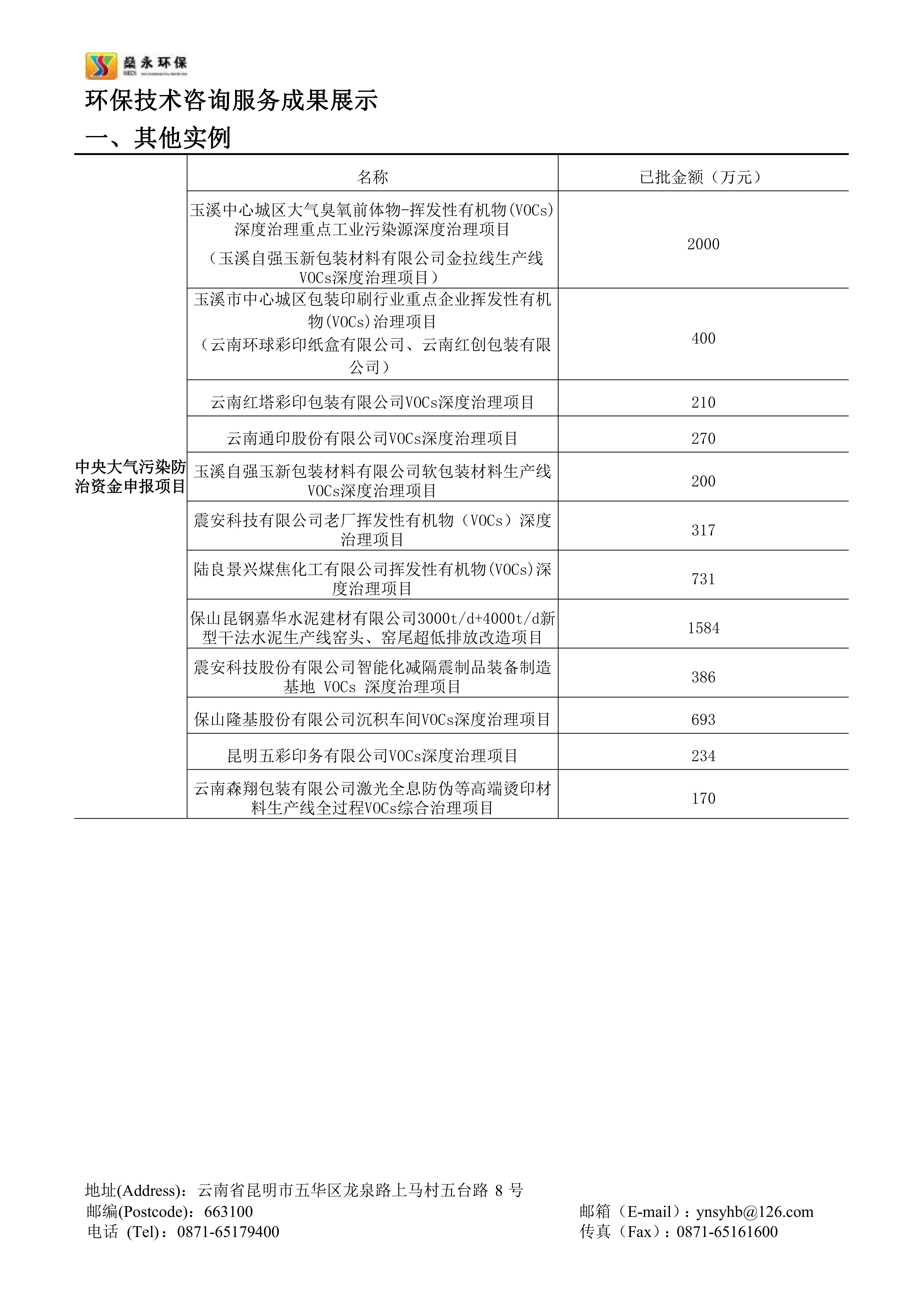 截止202310月,公司幫助云南省多個行業(yè)企業(yè)成功申報的中央大氣污染防治資金已入庫項目共計20余個,申報項目已獲批總資金近一億余元。公司承接的云南省內(nèi)中央大氣污染防治資金申報項目申報成功率高,成效顯著,服務(wù)細致高效,在云南省中央大氣污染防治資金申報領(lǐng)域具有豐富的經(jīng)驗。